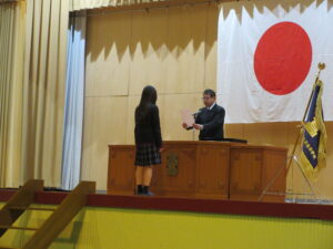 本日、令和7年度卒業証書及び修了証書授与式が行われ、海洋技術科20名、食品流通科11名、専攻科9名が在校生や教職員、来賓の方々や保護者の方に見送られながら学舎から巣立っていきました。