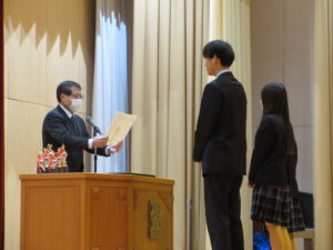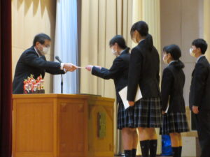 本日、3学期始業式・表彰式を行いました。生徒の皆さんの元気な姿を見れて安心しました。あっという間の3学期を一日一日大事に過ごしてもらいたいです。 表彰式では2学期に活躍した生徒たちを表彰しました。受賞された皆さんおめでとうございます。皆さんの素晴らしい活躍は学校全体の励みになります。
